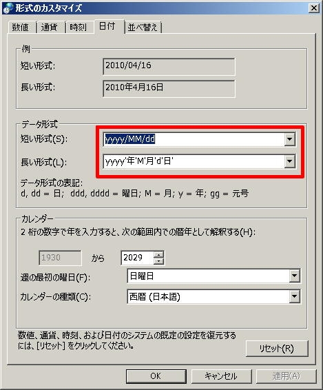 形式のカスタマイズ