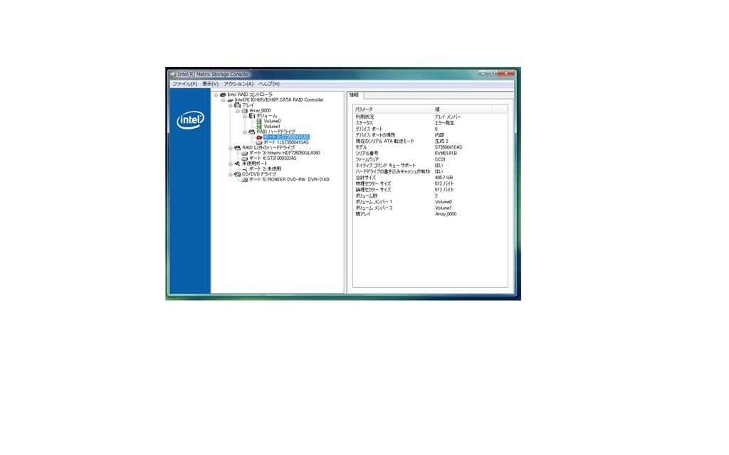 『RAID EROOR』SEAGATE ST3500410AS (500GB SATA 7200) 里っ子さんのクチコミ掲示板画像1/1