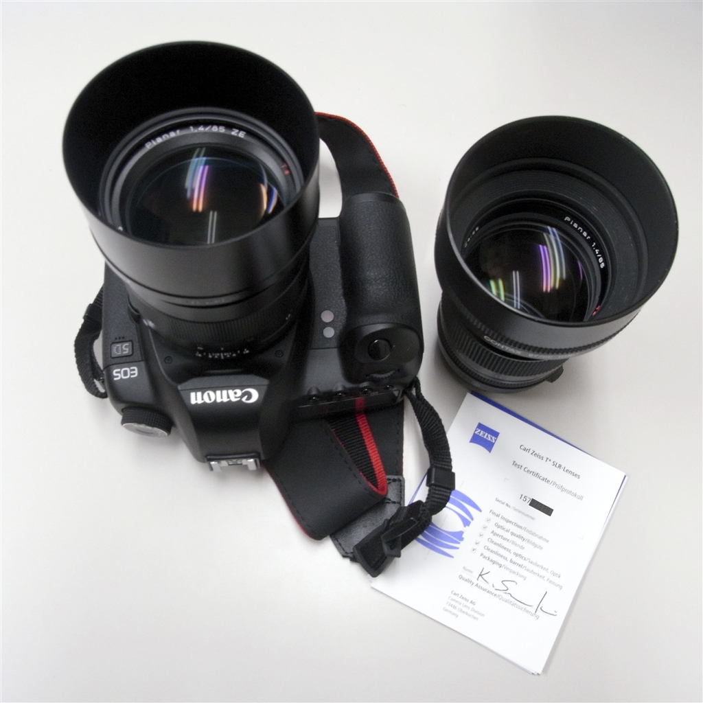 『写真1.検査証に感激!』カールツァイス Planar T* 1.4/85 ZE 夢のデアドルフさんのクチコミ掲示板画像1/3