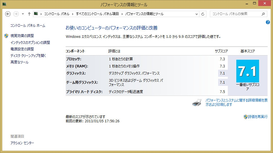 Windows エクスペリエンス インデックス
