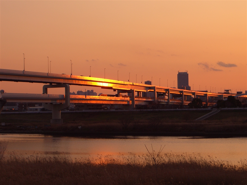 夕陽に照らされて