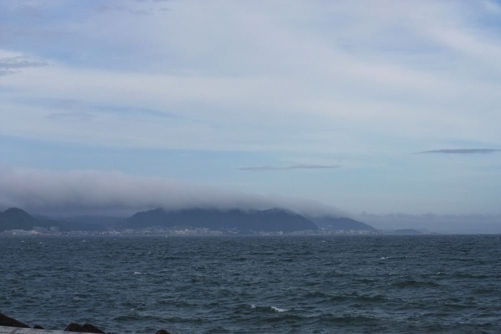 岬に湿った空気が当たり、雲ができます。
