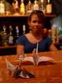 昨夜、行きつけのバーのオネエサンが小学校で習ったってツルを折って見せてくれました。