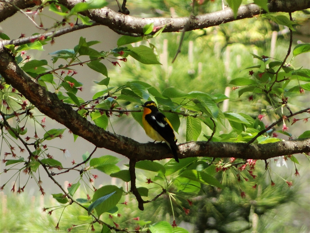 キビタキさんです(桜の花が散ってて残念)