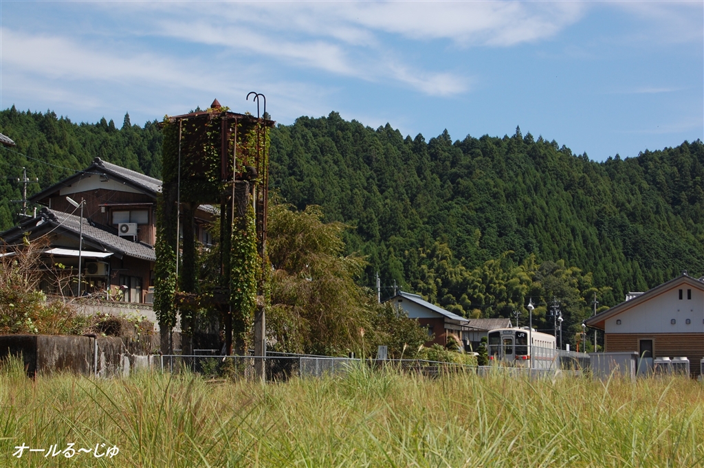 終点伊勢奥津駅 左側にあるのが蒸気機関車時代に使われていた給水塔
