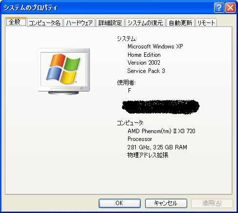 『システムのプロパティ』GIGABYTE GA-MA770T-UD3P Rev.1.0 パファさんのクチコミ掲示板画像1/2