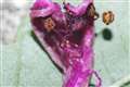 そこで周りにあった昨日咲いたであろうオシロイバナを無理やり開けて花粉をマクロりました。