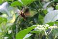 コガタスズメバチの写真はいいですねぇ。とくに顔をこちらに向けて飛んでくる様子がいい。恐ろしい顔で、一瞬仰け反りそうになります(^^;