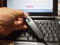 逆向きに差し込むとすこし外れにくくなりますよ。