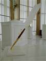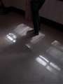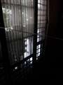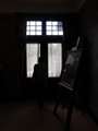 ・絵の額縁のガラスに反映されている窓のカーテンの模様や、