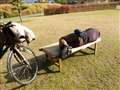チャリに乗りながら^^