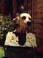 ペコちゃんは、店の出入り口の前に置いてあるので、道とガラスドアの間で、