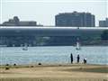 一つおいて隣の板は新型で盛り上がっていますが、当方の様な年寄りには余り関係が無いので、相変わらずこのCX2で頑張っています。凧揚げに行きましたら、この猛暑にも関わらずヨットの連中が海面を滑っています。子供たちもハゼをとっているのか?夏休みの終わりを楽しんでいるようでした。海面のキラキラを撮ろうと思っていましたが、光線の都合か余り上手く行かず、場所と時間を考えねばと思っています、^_^;。