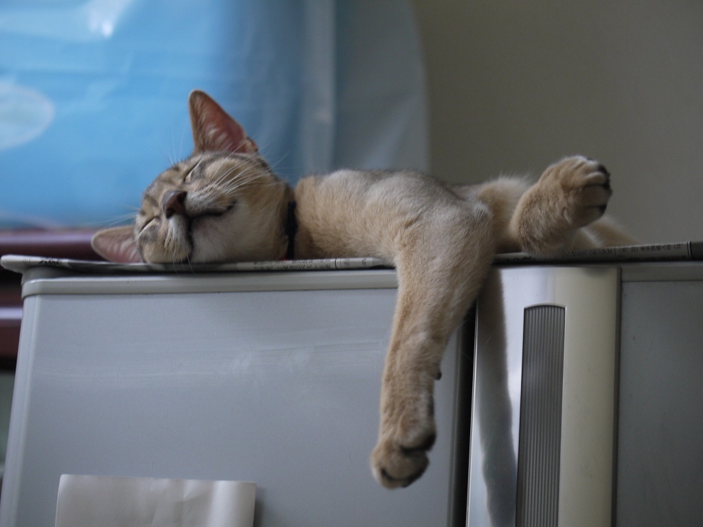 お風呂上りにビールを飲もうと思ったら・・・(冷蔵庫の上)