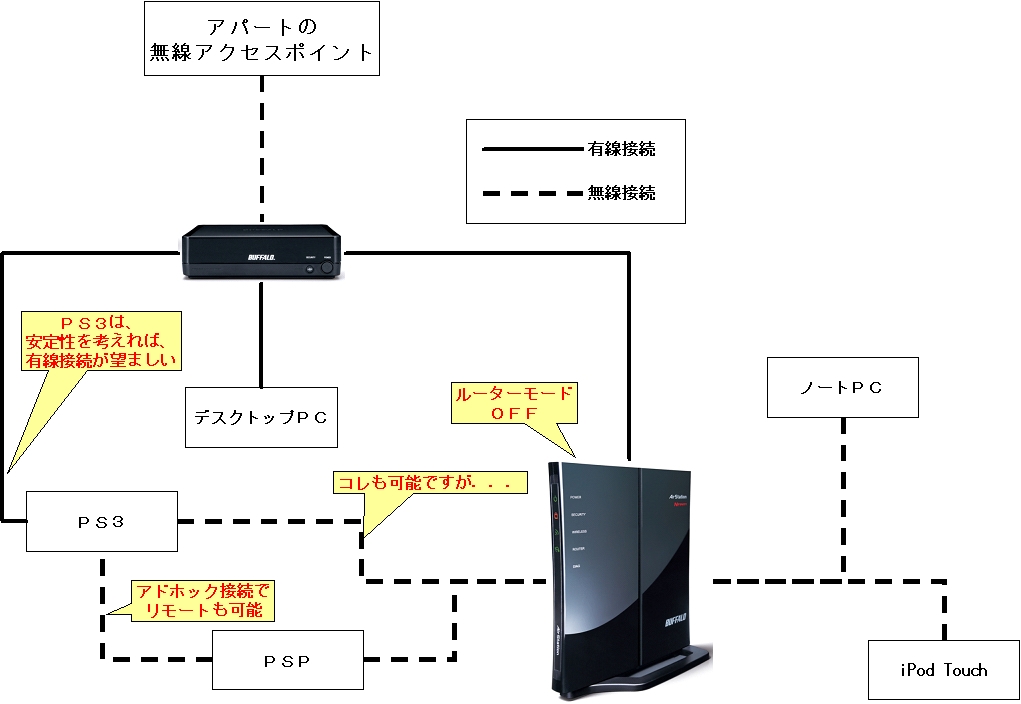 『こういう繋ぎ方もアリです』バッファロー AirStation WHR-HP-GN 名無しの甚兵衛さんのクチコミ掲示板画像2/2