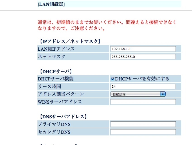 ADSLモデムのLAN側設定はDHCP