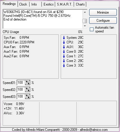 『speed fan での温度計測です』インテル Core i5 750 BOX k03bb046さんのクチコミ掲示板画像1/1
