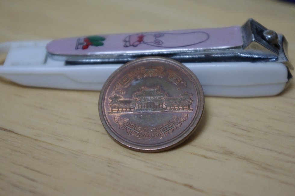 爪きりと10円玉のマクロ撮影