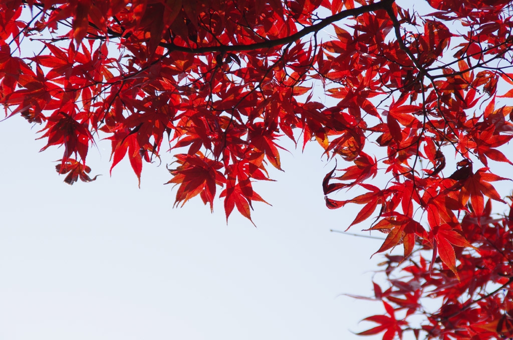 終わり近いもみじを逆光で