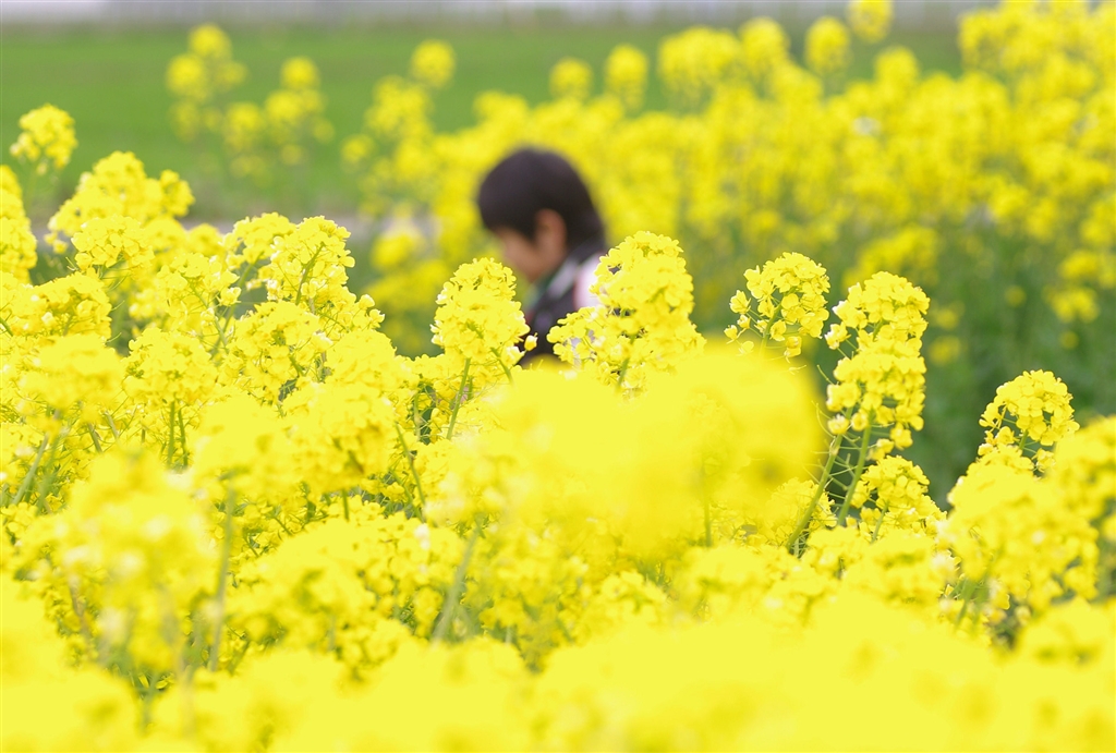息子と菜の花畑にて