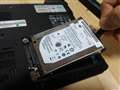 工具は小さなプラスドライバが1つで済みます。裏蓋の3つのネジを外せば簡単にHDDにアクセスできます。最初、ネジ穴の1つがテープで塞がっているのに気づかず、外れなくて焦りました。中身は、黒いテープを強めに引っ張れば、カポッと外れます。外周のコの字型した金具の4ヵ所のネジを外すとHDD本体が外れます。代わりに付けたSSDはHDDより薄いですが、ネジで止まっているのでガタつくことはありません。HDDが94g、SSDは44gなので50g軽量化できました。