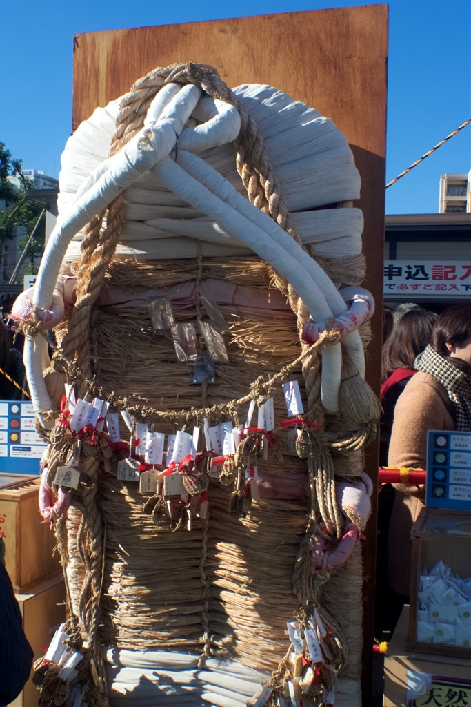 大わらじに願いを書いた小わらじをかけて、足災消除を願うらしい。