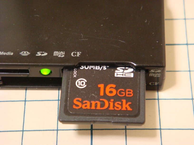 SDHC16GBを左に寄せる感じで、右奥を浮かせると認識されました