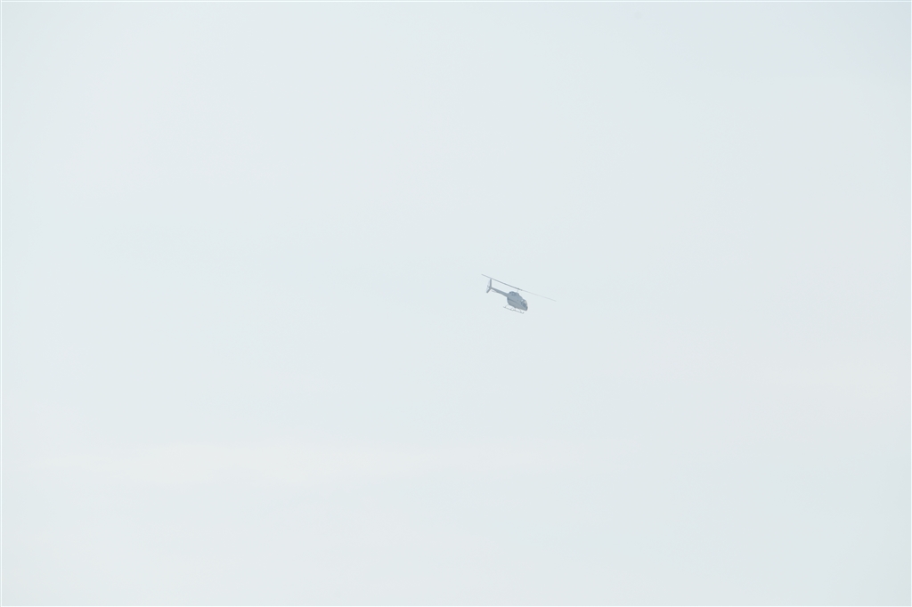 半逆光での白いヘリ