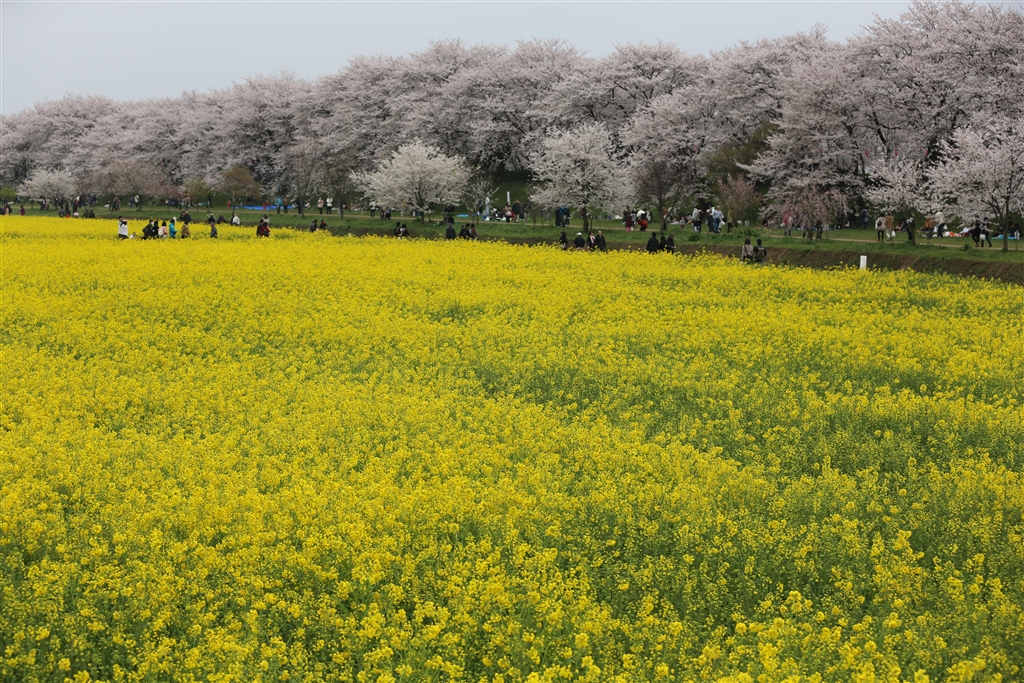 昼間でも暗い中、菜の花の黄色に救われた...