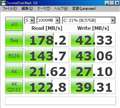 もっとも最初の方のベンチはSandForce搭載製品は圧縮が効く0データでのベンチなんで分かり難いかもしれません(ライト100M/s超えちゃってるのは0データのベンチです。)