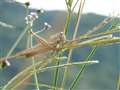 >風のゆれで、ピントとがバッタではなく草の茎にあってしまい...