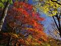 空の青さと幹に表情、燃えるような紅葉+ベルビア。