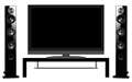 私はこのTV購入と同時にDENONのホームシアターシステム(DHT-S500HD)を購入し、スピーカーを載せるため、ガラス戸がないものを探し、朝日木材加工という会社のテレビ台 AS-G1250(W 1250 × H 430 × D 425 mm ( W 125 × H 43 × D 43 cm ) を買い求めました。