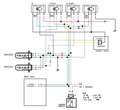 配線は添付画像のように行い、1灯-OFF-2灯の切り替え、Hiへの切り替え、すべてうまくいったように見えたのですが、いったんHiビームにするとLoに戻してもライトがつかず、HiもLoもつかなくなります。