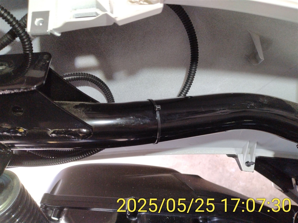 右側、コルゲートチューブ3本(前カメラ、スイッチ・GPS、電源)