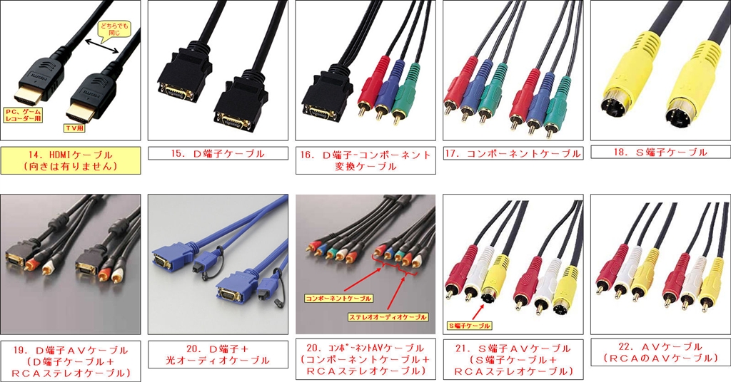 各種ビデオケーブル