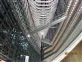 国際フォーラム館は被写界深度からはずれたためボケてる、、または端っこだからボケてるというはなしではないでしょうか?