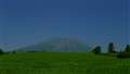 1本道の左右の農場を過ぎると左手に岩手山が現れます。