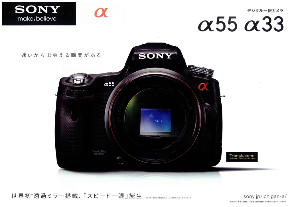 『α55/33のカタログ表紙』SONY α55 SLT-A55V ボディ Canon AE-1さんのクチコミ掲示板画像1/1