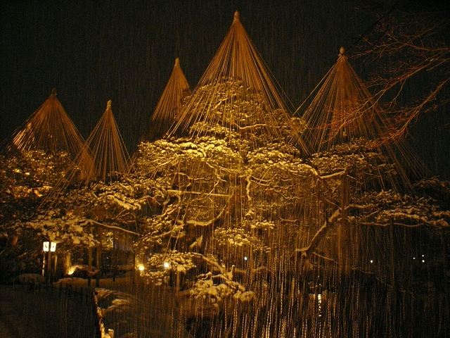 雪吊りのライトアップ(RICOH Caplio R3)