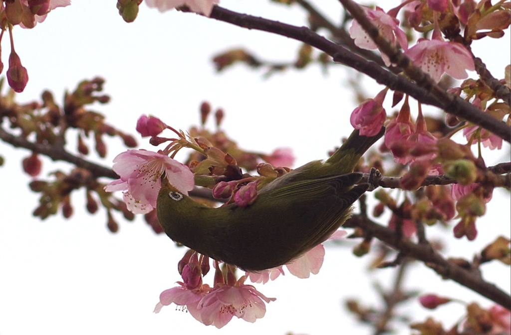 メジロが桜の木に