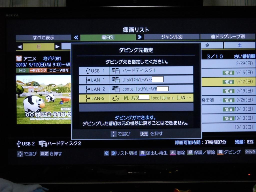ダビング先をDLNAに指定します