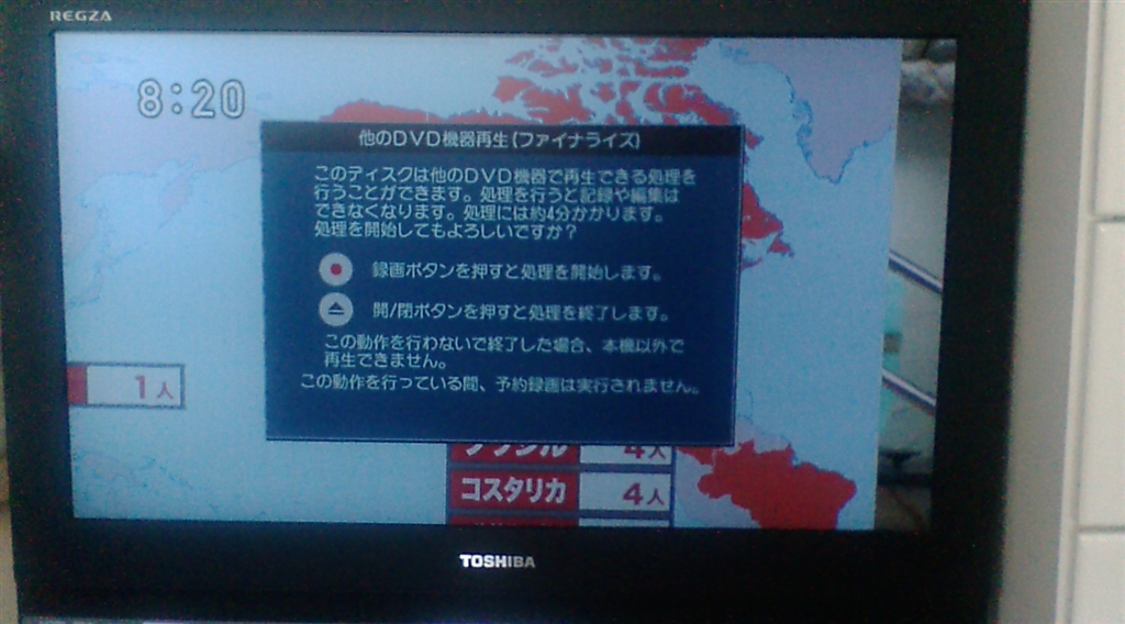 未ファイナライズDVD取り出し時の画面表示