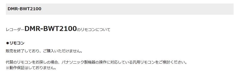 『パナソニックホームページの回答』パナソニック DIGA DMR-BWT2100 太郎小太郎さんのクチコミ掲示板画像1/1
