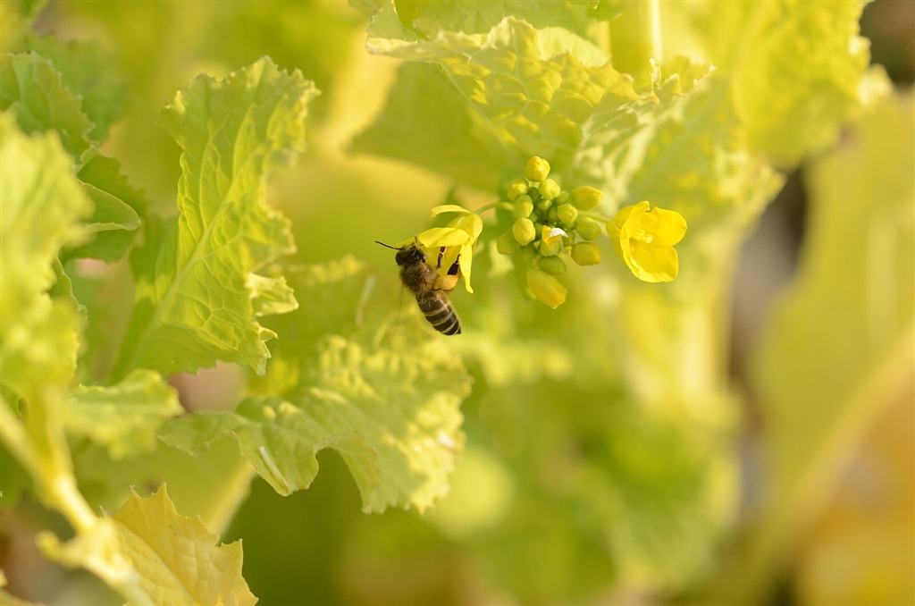 ミツバチも午後遅くまで花粉集め