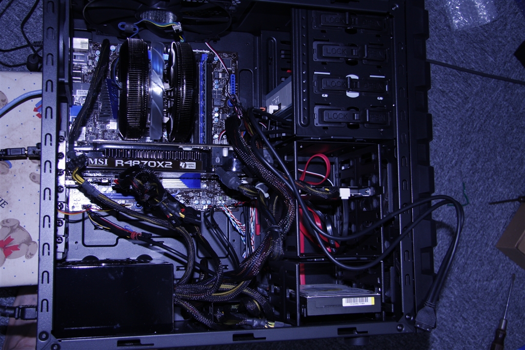 5インチベイの隙間から出ているケーブルです。