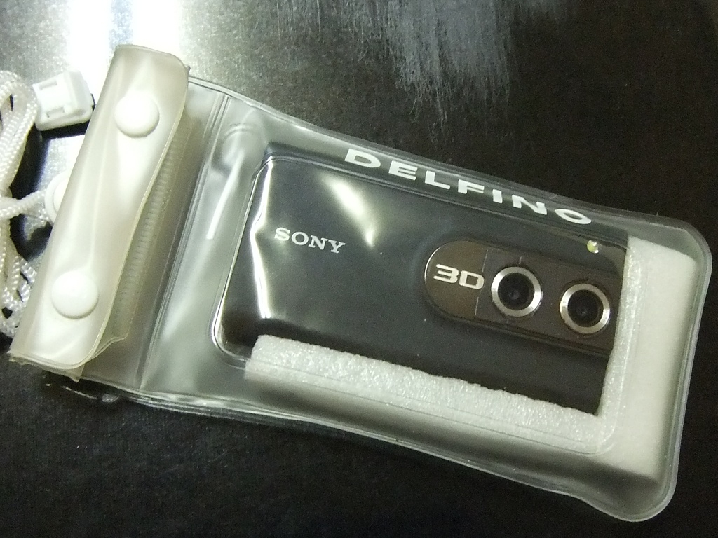 iPhone用防水ポーチに入れたソニー3Dブロギー