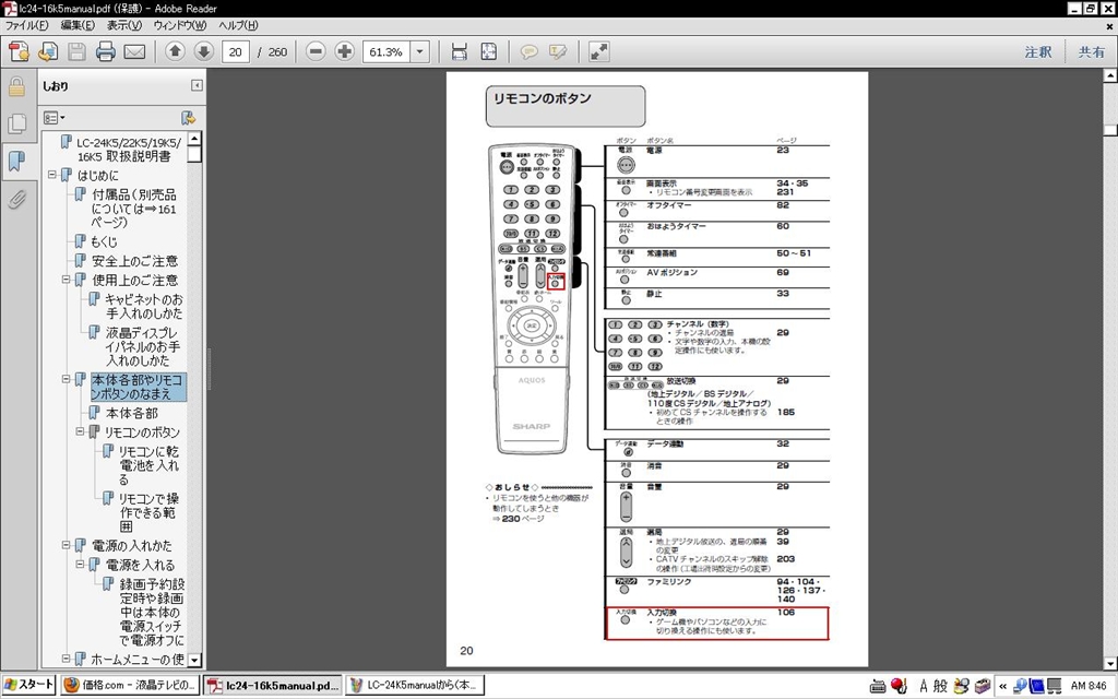 『リモコンのボタン(取説P20)』シャープ AQUOS LC-24K5-B [24インチ ブラック系] 万年睡眠不足王子さんのクチコミ掲示板画像2/3