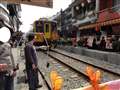 台湾でのフリーの日は北へ向かって電車を乗り継ぎ「十分」というところに行きました。日本語はもちろん片言英語すら通じなったのですが、面白い所でした。