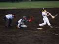 横浜球場のベンチ後方20段目から、APS-C機: 焦点距離 300mmで